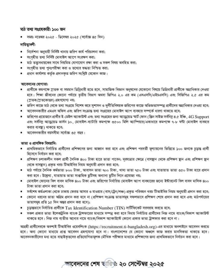 The recruitment drive specifies that the role of enumerator will last for 45 days. This short-term but highly impactful position will come with a generous allowance of 1,17,000 BDT. This stipend is aimed at attracting skilled and motivated individuals, providing them with an opportunity to earn a substantial sum in a short period while contributing to the national development process.