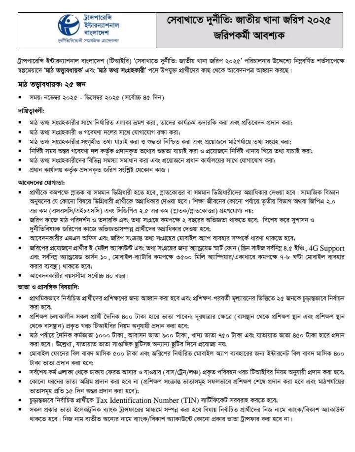 The National Household Survey Enumerator Recruitment 2025 offers an excellent chance for individuals to earn while contributing to the nation’s data-driven decision-making process. With an impressive stipend of 1,17,000 BDT for just 45 days of work, this opportunity is not only lucrative but also immensely rewarding in terms of personal and professional growth. If you’re looking for a short-term job with high rewards, this could be the perfect fit for you!